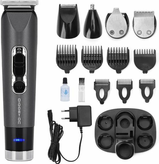 Met de verschillende scheerkoppen kun je jezelf tot in de puntjes verzorgen. Je kunt een mooie overloop scheren, figuren of strakke lijnen scheren in je kapsel, je baard en je neushaar trimmen. Met de opzetkammen kun je kiezen uit verschillende lengtes, geschikt voor ieder kapsel. Dankzij het meegeleverde oplaadstation, kun je de tondeuse en opzetstukken netjes opbergen.