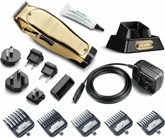 Andis Master snoerloze tondeuse, de absulute top. Zeer robuste aluminiummet een limited edition custom goudkleurige corrosiebestendige behuizing in Retro stijl. Scheren in stijl zonder beperkingen.