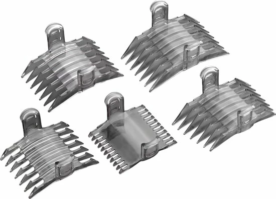 Je krijgt 4 opzetkammen met lengtes tussen de 3-13mm. Zonder opzetkam, kun je extra dichtbij de huid komen, tot 0,3mm. De messen zijn verwijder- en afspoelbaar.