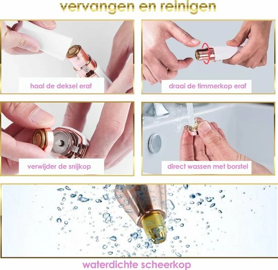 Deze precisietrimmer heeft 2 verschillende kopstukken, ook heeft hij ingebouwde USB oplaadbare batterijen, zodat je nooit meer gedoe hebt met losse batterijen en er overal en altijd geweldig uitziet. De enige echte trimmer die direct en pijnloos uw ongewenste haren verwijdert voor een betere uitstraling, met het ingebouwde Led licht is dit het ideale Epileerapparaat voor lichaam- en gezichtsontharing. U heeft geen andere ladyshaves of scheerapparaten meer nodig met deze precisietrimmer.