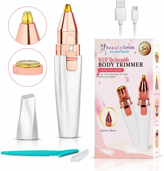 Hier is de Beautyloves trimmer met ingebouwd LED licht voor de perfecte gladde huid. geen andere onhandige ladyshaves of trimmers meer, de Beautyloves wenkbrauw epilator krijgt alle haartjes weg en u krijgt er 2 opzetstukken en een wenkbrauw scheermesje bij! De meest complete epilator geschikt voor lichaam- en gezichtsontharing.