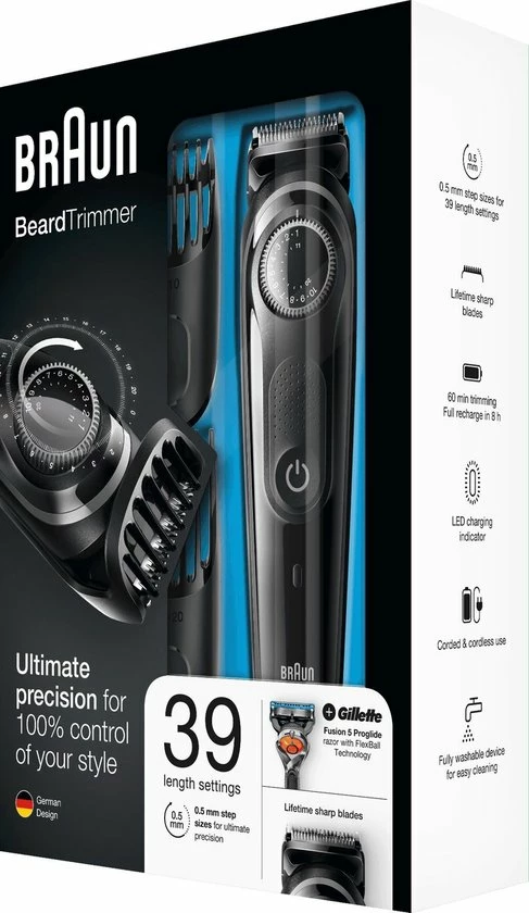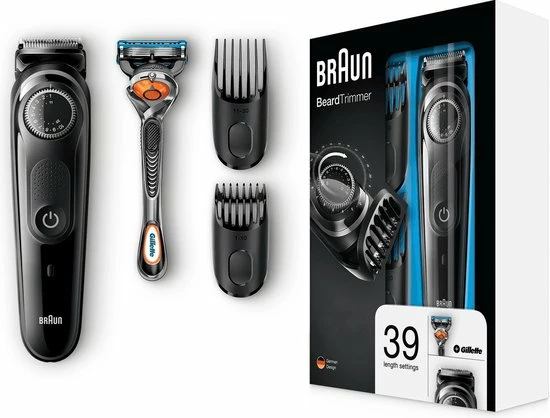 Met de Braun BT3042 baardtrimmer + Gillette scheermes kun je met veel precisie de baard trimmen die je wilt. De precisiedraaiknop met 39 lengte-instellingen helpt je hierbij. De blijvend ultrascherpe roestvrijstalen mesjes scheren lang of dik haar zonder eraan te trekken. De Braun baardtrimmer is volledig wasbaar voor eenvoudige reiniging onder stromend water.
