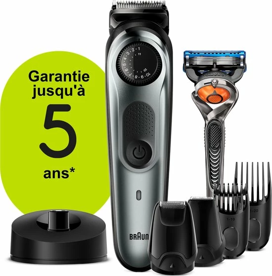 De Braun baardtrimmer BT7240 beschikt over 4 opzetstukken en je krijgt er een Gillete Fusion5 ProGlide scheermesje bij voor een complete scheerervaring. Dankzij de precisiedraaiknop kan je kiezen uit 39 lengte-instellingen van 0,5 mm. Daarnaast is het mogelijk om zowel je baard als je haar te trimmen, mede dankzij de levenslang scherpe mesjes. De Litium-ionbatterij maakt het bovendien mogelijk om 100 minuten lang te trimmen. Is hij leeg en wil je even snel trimmen? Binnen 5 minuten kan je snel opladen en voor ??n keer trimmen. Als je klaar bent, berg je jouw baardtrimmer eenvoudig op en laadt hij tegelijkertijd op dankzij de oplaadstandaard.