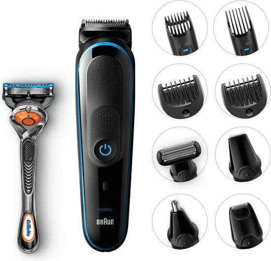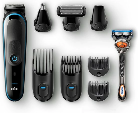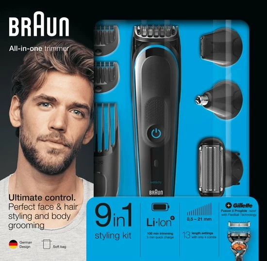 - 9-in-1 trimmer voor baard, gezicht, haar, lichaam, oor en neus trimmen en een gratis Gillette Fusion5 ProGlide scheermesje voor glad scheren, baardtrimmer, scheerapparaat