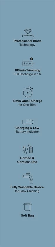 - 100% controle van kop tot teen: Een precisiekam met 20% minder plastic zorgt voor een moeiteloze trim, of het nu snor, sikje, stoppels of haar is.