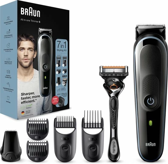 7-in-1: de Braun MGK5 baardtrimmerset voor mannen trimt elke haarlengte van baard tot gezicht, tot hoofd