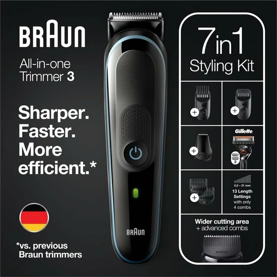 - Scherper. Sneller. Effici?nter: De trimmerkop heeft een bredere scheerzone en scheert meer haartjes bij elke beweging (in vergelijking met vorige Braun trimmers). Krijg je look in minder bewegingen.