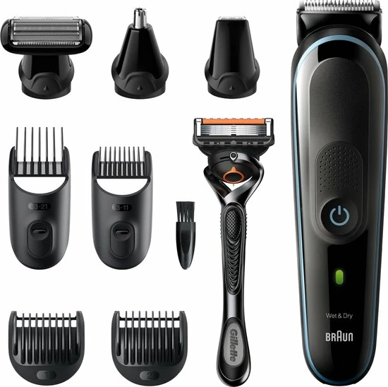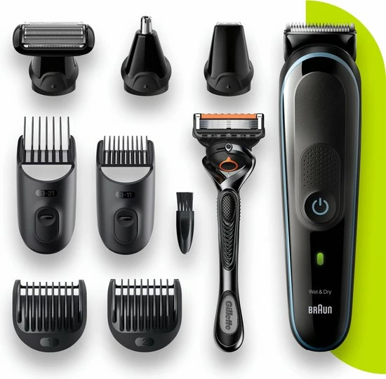 9-in-1: de Braun MGK5 baardtrimmerset voor mannen trimt elke haarlengte. Van baard, gezicht, hoofd, oren en neus trimmen tot body manscaping