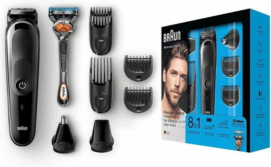 – 8-in-1 set inclusief gezichts- en baardtrimmer, haartrimmer, oor- en neustrimmer, scheermes voor een gladde scheerbeurt
