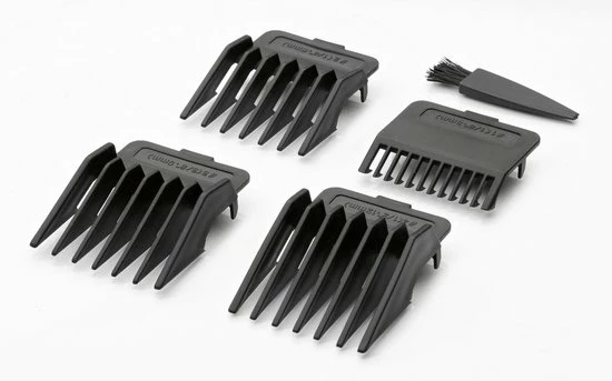 Bij de levering inbegrepen: 4 opzetkammen, reinigingsborstel, scheerhoofdbescherming, stylingkam.