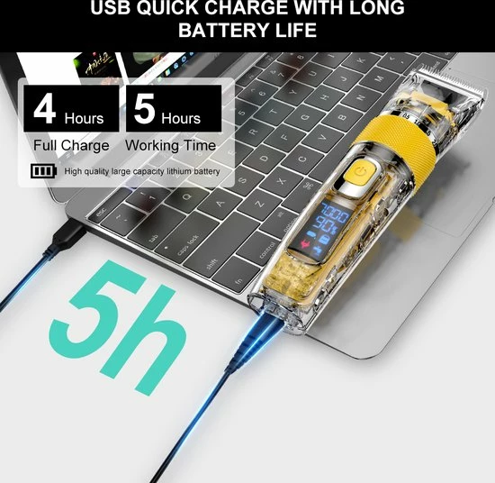 - De tondeuse heeft LED scherm herinneringen zoals opladen, onderhoud en andere vier functies.