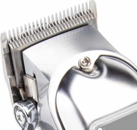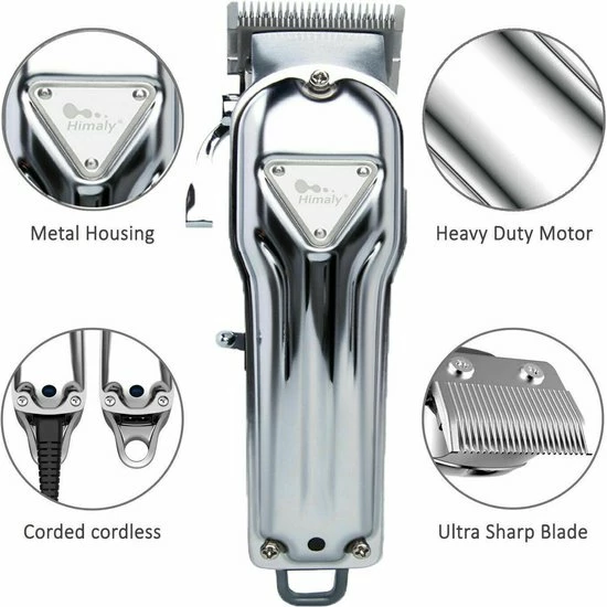 Ergonomisch ontwerp Deze elektrische tondeuse met metalen body biedt een comfortabele en veilige grip, perfect voor professionele kappers en stylisten.