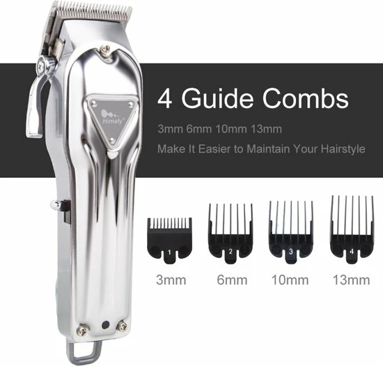 Wordt geleverd met 4 ABS kunststof beschermkammen van hoge kwaliteit: 3 mm, 6 mm, 10 mm en 13 mm, inclusief adapter, olieflesje en reinigingsborsteltje.