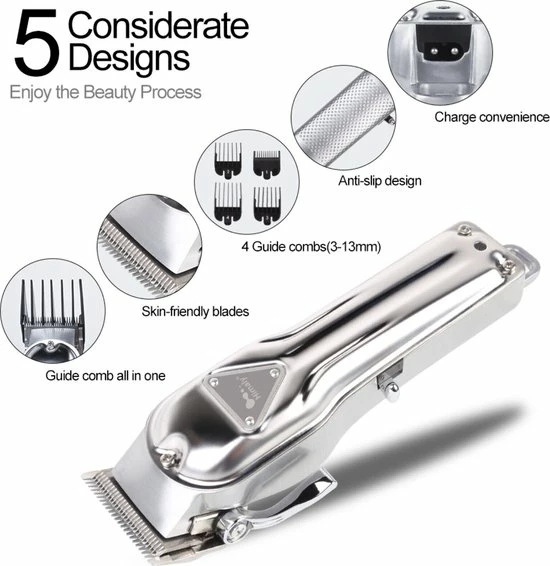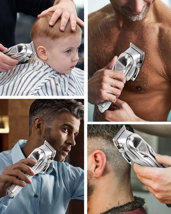Met de professionele tondeuse kunt u uw haar thuis fris knippen, tijd en geld besparen en uw haar gemakkelijk knippen. Dit is ook de eerste keuze voor beginnende kappers en beginners. Deze snoerloze tondeuse is ook een goed cadeau voor de familie.