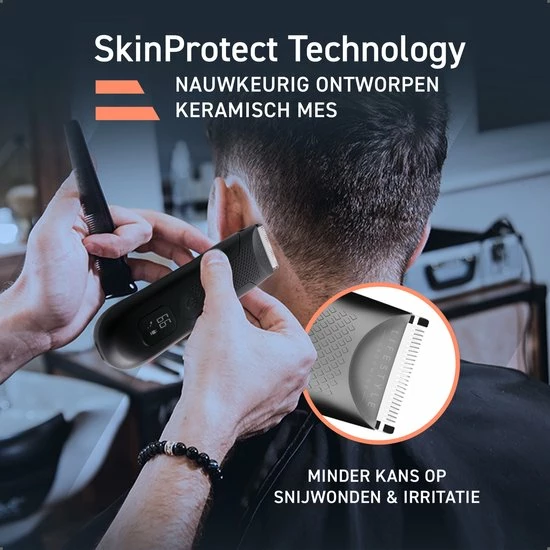 Tip: Ben je scheerschuim vergeten te kopen? Dankzij de nieuwste Skin Protect-technologie die verwerkt zit in deze waterproof lichaamshaar-tondeuse blijft je huid optimaal beschermd tijdens het trimmen.