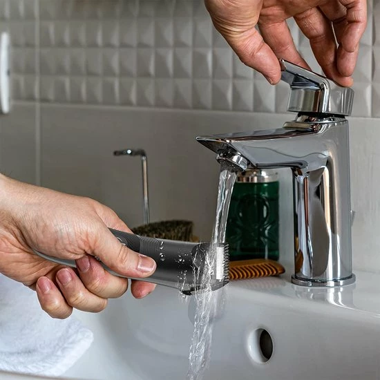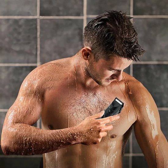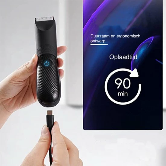 Deze mannelijke trimmer van top niveau is waterdicht en kan worden opgeladen met een bijgeleverde USB-kabel.