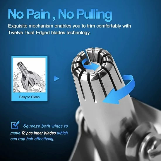 - Ergonomisch ontwerp, zodat de neushuid tijdens het trimmen wordt beschermd en je de neushaartrimmer absoluut pijnloos kunt gebruiken.