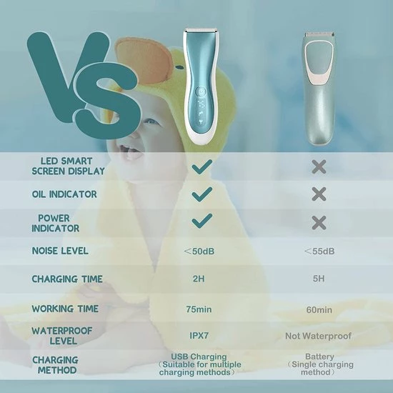 - Zeer stil en trillingsarm ontwerp: Met ultrastille technologie, babyhaartrimmer met stil ontwerp om trillingen te verminderen; kan 40-50 decibel voorkomen, uw baby beschermen bij het knippen van haar.