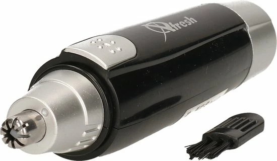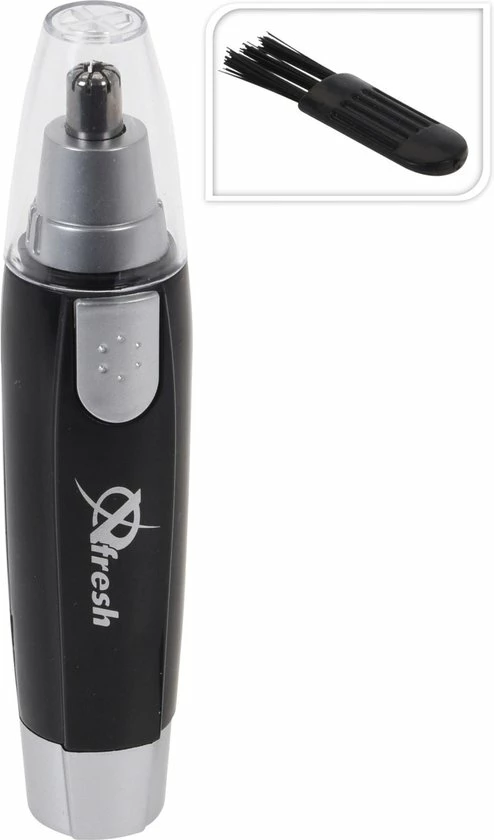 Neushaartrimmer/oorhaartrimmer zilver/zwart. Haartrimmer met roestvrijstalen scheerkop voor het verwijderen van neusharen en oorharen. De trimmer is eenvoudig te reinigen. Werkt op 1 AA batterij (niet inbegrepen).