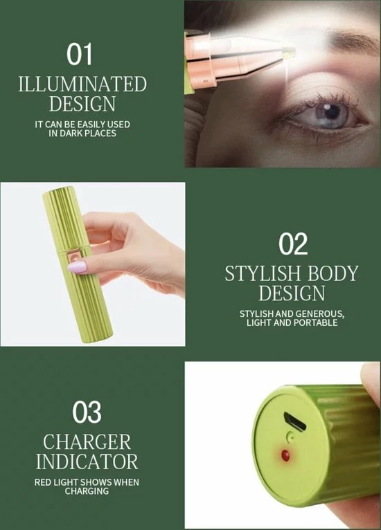 【Opgewaardeerd USB oplaadbaar met LED-licht】 Het perfecte ontwerp plus het ingebouwde LED-licht stelt je in staat om elke ronding van het lichaam te volgen en ervoor te zorgen dat je geen haar mist, het maakt de procedure overal veelzijdig in gebruik, laat je make-up achter gladder.