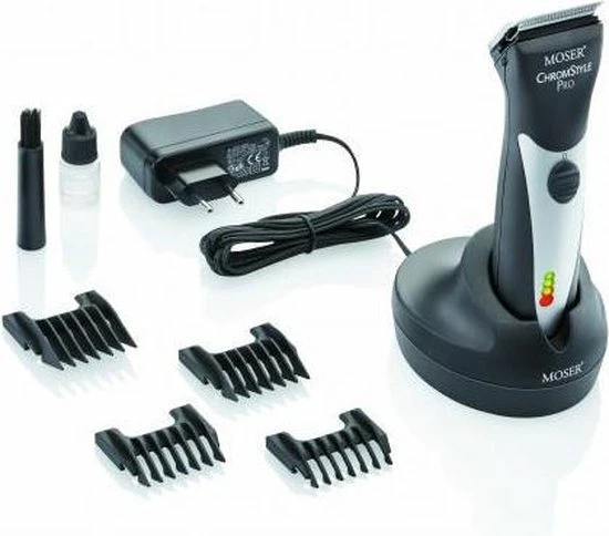 De Moser Chromstyle Pro 1871 lithium is een tondeuse met een geintegreerde snijlengte aanpassing, deze kan aangepast worden van 0,7mm tot 3mm lengte. De motor van de tondeuse wordt aangestuurd door een chip die zorgt voor een constante snijkracht onafhankelijk van het accuvermogen of haartype. Verschillende geluidstonen geven de verschillende oplaad stadia aan. De tondeuse wordt geleverd met vier opzet stukken (3-6-9-12mm). Inclusief oplaadhouder, adapter, reinigingsborstel en olie.