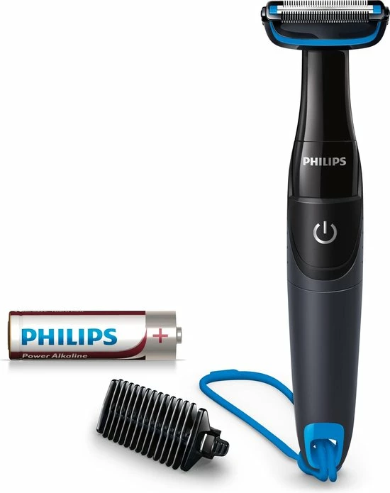 | Verpakkingsinhoud | De, Bodygroom, 1, trimkam, een, AA-batterij, een, douche-snoer, om, de, Bodygroom, op, te, hangen, en, een, handleiding |