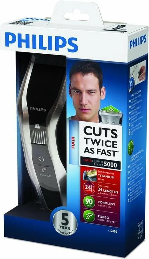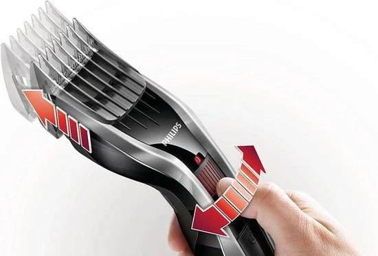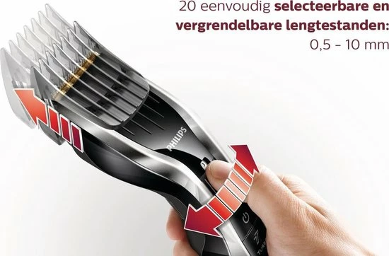 De Philips HC5440/16 Tondeuse is gemaakt om sneller en beter te kunnen trimmen. Draai aan het instelwiel om eenvoudig éen van de 24 lengte standen te kiezen (0,5- 23 mm) met een precisie van 1mm. De roestvrijstalen messen zijn zelfslijpend voor langdurige scherpte en hebben een legering van titanium waardoor deze tondeuse ook gebruikt kan worden door mensen met een metaalallergie. De tondeuse is 75 minuten draadloos te gebruiken na 8 uur opladen. Reinig de tondeuse eenvoudig door het hoofd eraf te klikken en deze af te spoelen onder de kraan.