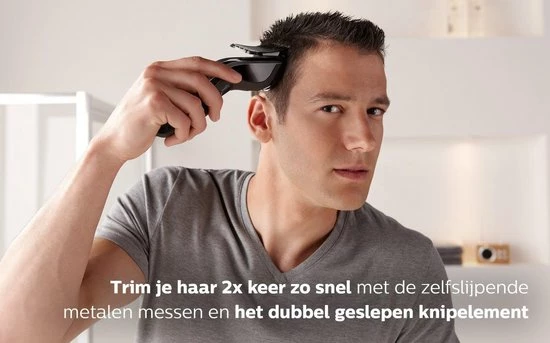Knip elk haartype met de geavanceerde DualCut-technologie, met een dubbel geslepen knipelement voor minder wrijving. Het innovatieve knipelement is ontworpen om haar twee keer zo snel te knippen als met gewone Philips tondeuses