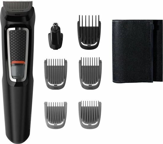 - Stylingbenodigdheden: Trimmer, Trimmer voor neus en oren, 2 baardkammen, 2 stoppelbaardkammen, 1 haarkam.