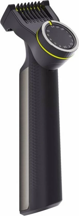 Met de instelbare precisiekam kies je uit 14 lengtestanden van 0,4 mm tot 10 mm, de lengte die bij jou past. Gebruik de opklikbare lichaamskam (3 mm) om heel eenvoudig ook lichaamshaar de gewenste lengte te geven.