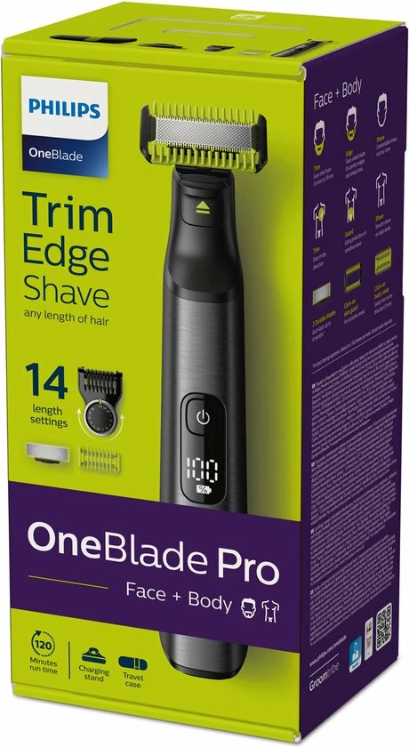 De Philips OneBlade is speciaal ontworpen voor het stylen van gezicht- en lichaamshaar. Scheren, trimmen en stylen wordt veel comfortabeler door het snel bewegende mesje, de speciale coating en afgeronde uiteinden. Je kunt de OneBlade nat en droog gebruiken.