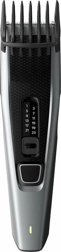 Stel eenvoudig de gewenste lengte in. De instelbare kam heeft 12 vergrendelbare lengtestanden, van 1 mm tot 23 mm, met precies 2 mm tussen elke lengte. Verwijder de kam voor een glad trimresultaat van 0,5 mm.