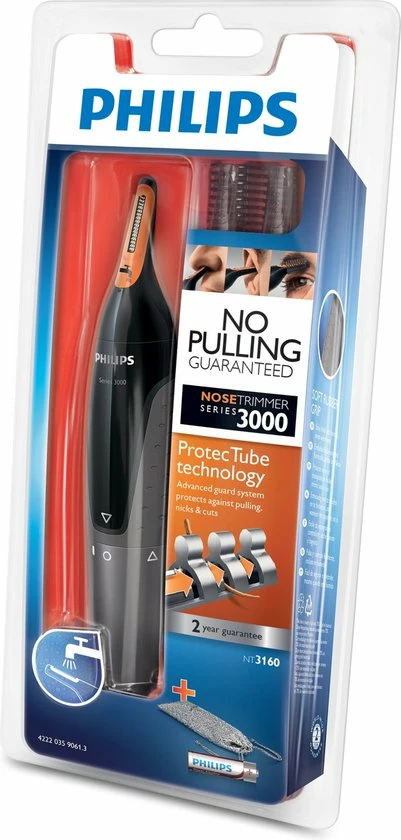 De Philips-neustrimmer is zo ontworpen dat deze een ideale hoek heeft om haar in het oor, neus evenals wenkbrauwen te bereiken. Met de Philips-neustrimmer kunt u er zeker van zijn dat ongewenste haren effici?nt worden verwijderd.