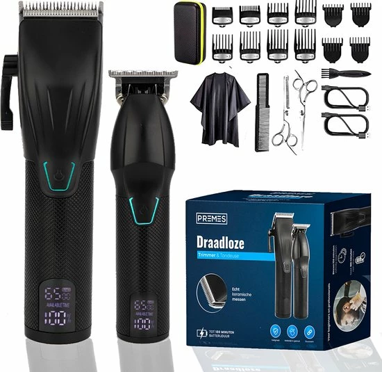 Met deze professionele trimmer en tondeuse set haalt u de ervaring van een barbier naar uw eigen huis! U geniet van een complete verzorging vanuit het comfort van uw eigen huis, waardoor u er altijd verzorgd uit zal zien! Met de set wordt het mogelijk om te trimmen, scheren en nog veel meer.