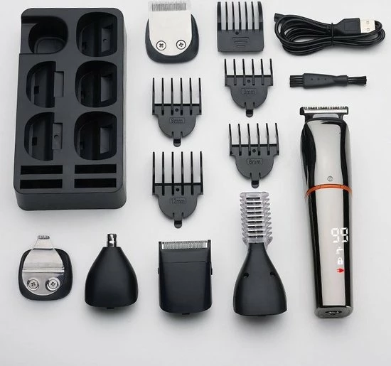 Pro-Care 6 in 1 RVS baard, haar en body trimmer tondeuse. Met 6 extra RVS opzetkammen voor de perfecte lengte overal. USB oplaadbaar. Kleur RVS Zilver.