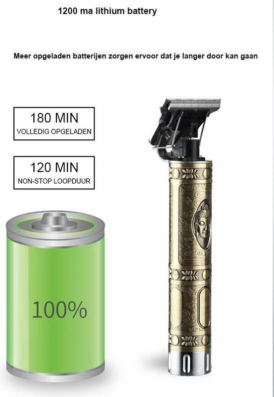 - Lithium-ion battery gaat 120 minuten non-stop mee; En is opgeladen in 3 uur.