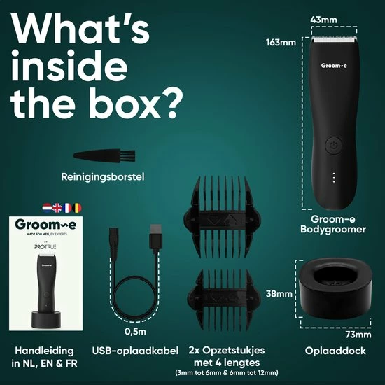 De beste body groomers moeten alle delen van het lichaam aankunnen en de Groom-e body shaver is ontworpen om jouw zaakje & lichaam schoon en strak te houden! Veilig EN zonder wondjes een aantrekkelijk lichaam met de Groom-e Bodygroomer.