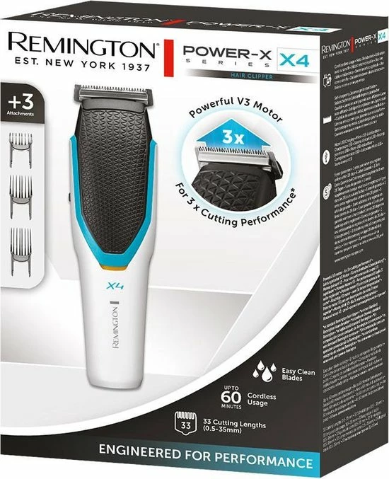 Wil je thuis ?n wanneer het jou uitkomt jouw haar (en misschien ook wel dat van je huishouden) bijhouden? De Power-X Series X4 bevat een aanpasbare draaiknop waarmee je kunt kiezen uit 33 lengtes. Kies vervolgens met de opzetkam gemakkelijk voor een lengte-instelling van 3 tot 35 mm en cre?er moeiteloos een professioneel resultaat. Met 3 keer zoveel trimvermogen* en het zelfslijpende Japanse snijblad, kun je gemakkelijk door het haar gaan. Dankzij het zelfslijpende snijblad blijft de tondeuse scherp, keer na keer, en kun je altijd vertrouwen op de X4 Tondeuse.