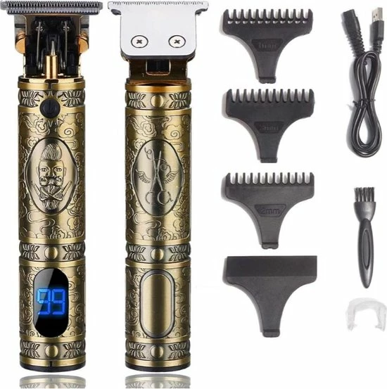 Deze luxe baardtrimmer of tondeuse kan gebruikt worden om uw baard te trimmen of het hoofdhaar te scheren. Twee in een dus! De trimmer ligt fijn in de hand en ziet er daarnaast nog eens stijlvol uit dankzij de gouden kleur en graveringen. De keramische kop bevat scherpe mesjes waardoor jij in een handomdraai je baard of hoofdhaar kan trimmen. De tondeuse word meegeleverd met 3 verschillende opzetkammetjes van 1mm, 2mm, 3mm, zo heb je zelf in de hand hoe lang de haren moet blijven. U kunt door de meegeleverde opzetstukken op 4 verschillende standen scheren. Aangenaam, effici?nt en snel scheren is wat je kan verwachten van de baardtrimmer.