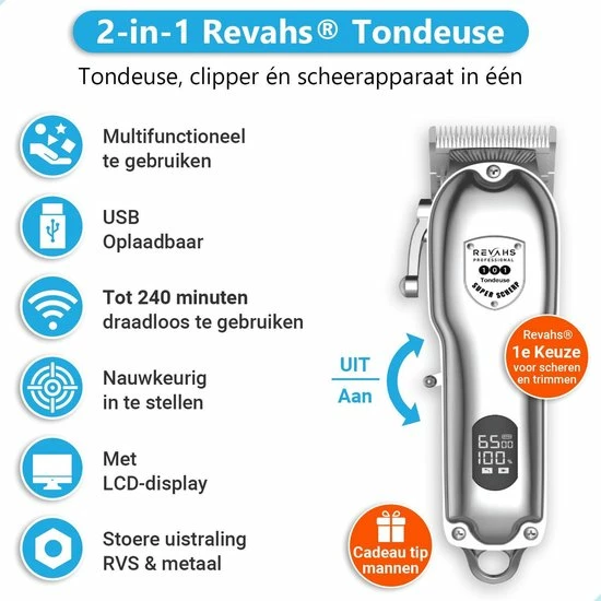 Op zoek naar de ideale tondeuse voor zowel het scheren, stijlen als trimmen? De professionele REVAHS tondeuse biedt jou talloze functies!