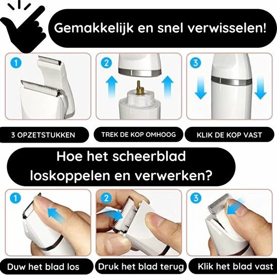 - Gemakkelijk je ongewenste haren verwijderen op een droge en natte huid