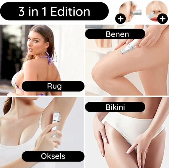 Door de 3 verschillende koppen is onze 3 in 1 Edition niet alleen geschikt voor de ontharing op je gezicht, maar ook rondom de bikinilijn, oksels, armen en benen (full body). Deze alles-in-één trimmer heeft het allemaal, zonder huidirritaties! In één klap pak je ALLE ongewenste haren aan.