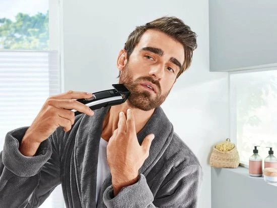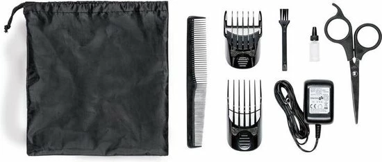 Ideaal om te knippen, op lengte te houden, contouren te maken, trimmen en scheren. Met nauwkeurige trimmer voor bijhouden van wenkbrauwen en bakkebaarden. De batterijduur van het apparaat is 60 minuten en komt inclusief schaar, kam, scheerolie, netspanningsadapter, reinigingskwast en opbergtasje