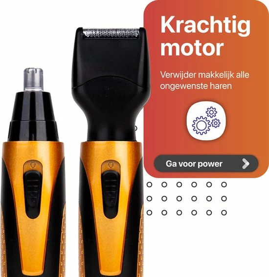 De 4 in 1 trimmer heeft een speciaal ontwerp om ongewenste haren in de neus, oor, wenkbrauw en baard te trimmen. Deze trimmerset is geschikt voor de neus, oor, baard en wenkbrauw. Hij wordt geleverd met 4 verschillende kopstukken. Voor iedere scheerbeurt een kopstuk. Je hoeft dus niet van scheerkop te wisselen tijdens het trimmen.