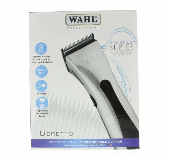 De Wahl Beretto Prolithium brushed chrome tondeuse is een zeer krachtige, draadloze tondeuse die geschikt is voor professioneel gebruik en thuisgebruik. De tondeuse beschikt over een Lithium Ion accu waardoor de tondeuse 90 minuten lang mee gaat op een volle batterij. De volledige laadtijd bedraagt 180 minuten. Tevens zorgt deze accu voor een langere levensduur. De Wahl Beretto Prolithium beschikt daarnaast over hoogwaardige verchroomde snijbladen die roestvrij, makkelijk te verwisselen zijn en makkelijk verstelbaar zijn van 0.9mm tot 3mm.