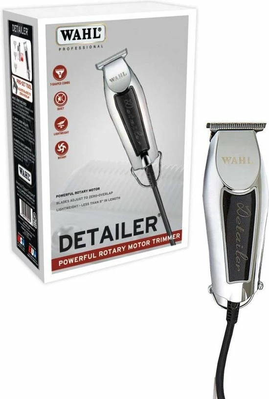Dit is een zeer kort scherend model (0.4mm) en geschikt voor de vakman die zijn werk graag verfijnt. Deze trimmer is minder geschikt voor klanten met een plooibare huid, zoals oudere mensen en kinderen. De WAHL Detailer Trimmer Original is een krachtige trimmer, ideaal voor continu gebruik. Uitgerust met een roterende motor voor een langere levensduur.
