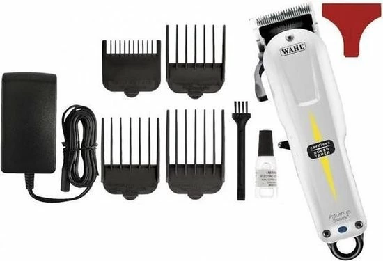 Als je op zoek bent naar een zeer professionele alleskunner van een gerenommeerd kwaliteitsmerk kom je al snel uit bij de Wahl Super Taper Cordless! Deze hoogwaardige magneettondeuse is speciaal ontworpen voor al het denkbare knipwerk en is daarmee zeer veelzijdig. Dankzij de duurzame roestvrij stalen, verchroomde snijbladen ben je verzekerd van jarenlang knipplezier. Belangrijkste eigenschappen * Draadloos of met kabel * Werkzame accutijd ca. 90 minuten * Lithium accu * Volledig opgeladen binnen 120 minuten * LED indicatie voor de accustand * Snijbladen verchroomd * Snijblad 40 mm breedte * Lichtgewicht Tondeuse * 2 jaar garantie Wordt geleverd met: * Mesbeschermer * Nederlandse gebruiksaanwijzing * Platte bovenkam * Opladende Transformator * Startflacon onderhoudsolie * Reinigingborstel * 4 Opzetkammen (3, 6, 10, 13 mm) Bijbehorend mes: 01006-401 Extra Tip: Onderhoud en reiniging verlengen de levensduur van je tondeuse en trimmer aanzienlijk! Zorg daarom altijd dat je topkwaliteit reinigingsolie én de juiste reinigingsborstels in huis hebt! Wahl Super Taper Cordless online kopen bij Ervaar zelf het gemak en de veelzijdigheid van de Wahl Super Taper Cordless! Bestel online voordelig en snel bij !